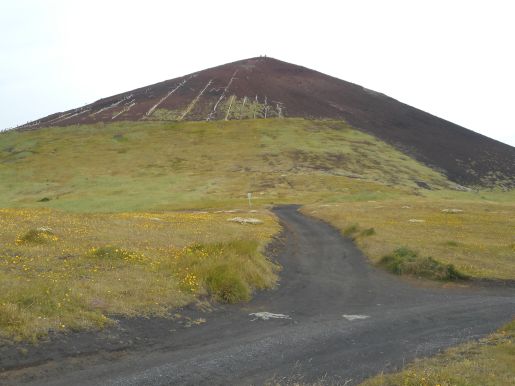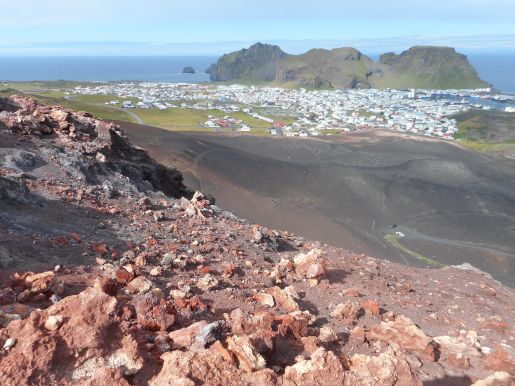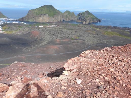 Cesta nahoru nebyla jednoduchá: Eldfell není žádná skála, ale navršený sopečný materiál. V podstatě to bylo jako lézt na obrovskou hromadu písku; půda ujížděla pod nohama a neustále hrozil pád na ostré lávové kamínky.