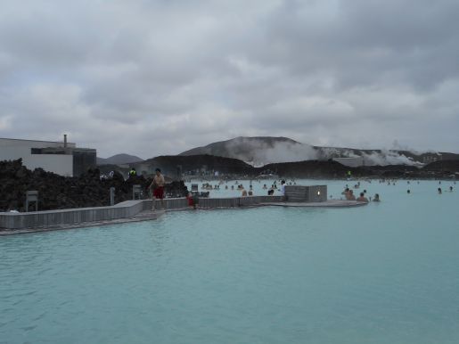 Laguna je opravdu modrá, ale voda je silně zakalená rozpuštěnými minerály a prakticky neprůhledná. Voda má 36–40 stupňů, a v některých místech jsme měli pocit, že i o dost víc. Je mělká, plavat se tu nedá a stát také moc ne – když se postavíte, vydáte tím horní půlku těla napospas studenému vzduchu.