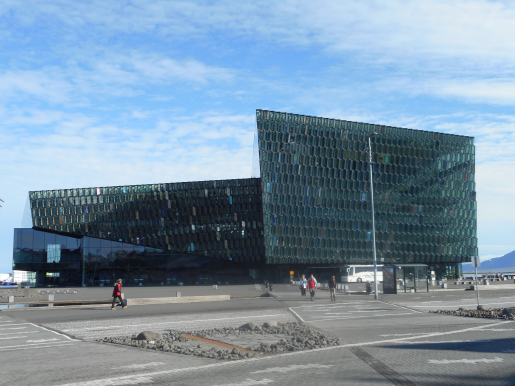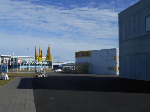 Poblíž přístavu se nachází Harpa, koncertní síň pokrytá zvláštní skleněnou mozaikou. Od ní jsme zamířili na západ podél pobřeží; naším konečným cílem bylo nalezení supermarketu Bónus, který je údajně nejlevnější na celém Islandu.